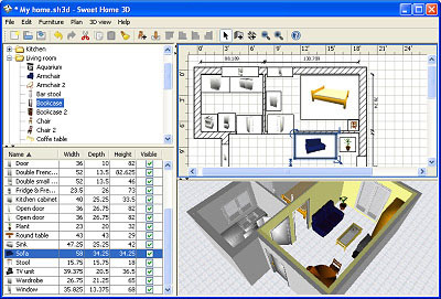 — бесплатное приложение для создания интерьера, которое позволяет размещать предметы интерьера на плоском плане и дает трехмерное превью. Пользователь может «нарастить» стены комнаты на существующем плоском плане, изменить цвет и текстуру, импортировать дополнительные 3D-объекты, менять размеры, одновременно видеть все изменения в плане в трехмерном представлении с точки зрения виртуального посетителя или сверху, а также распечатать план и 3D-вид.